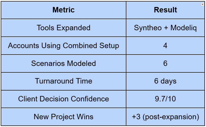 For agencies, winning and retaining clients means moving up the value chain. With Syntheo + Modeliq, agencies can: