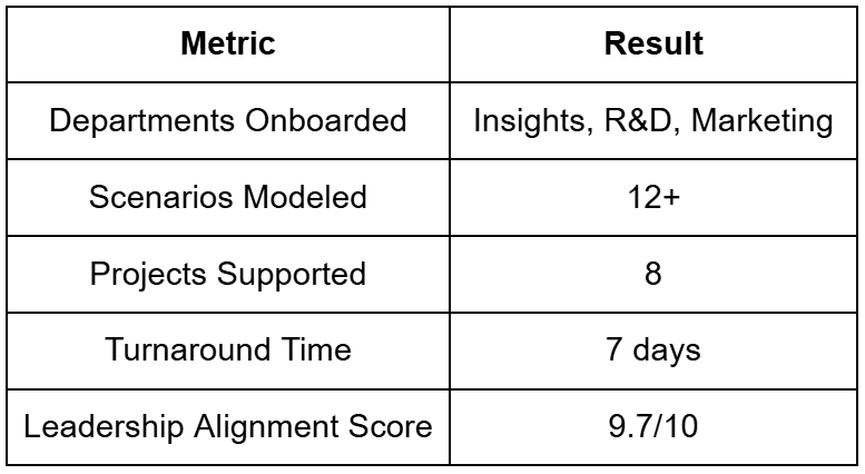 The brand scaled Modeliq beyond insights into R&D and marketing, aligning functions and enabling faster, more confident strategies.