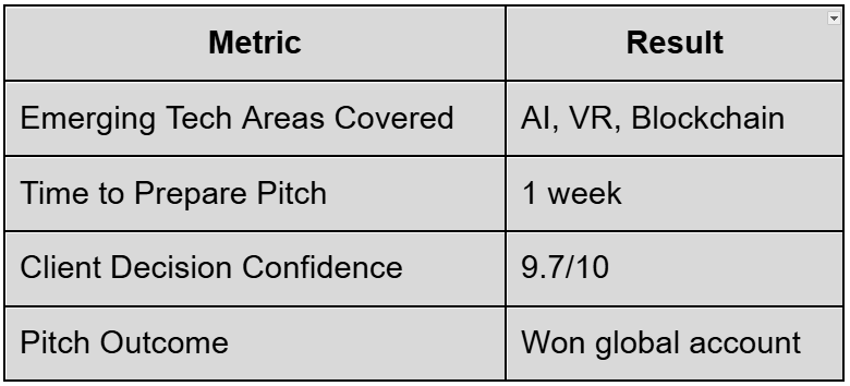 By integrating NeoPulse insights, the agency differentiated its pitch with future-proof credibility and won the global client.