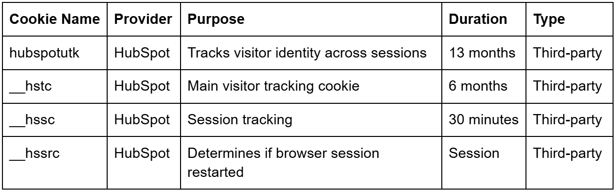 We review our cookie usage periodically. If tools or tracking technologies change, this list will be updated accordingly.